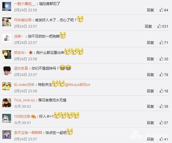 评论中,个个都是是抱着调侃的心态去看待这件事情的,或者真的像粉丝那般说,落花有意流水无情,又或者是什么都没有,只是寻常互动而已,搞点气氛什么的,还是可以有的。