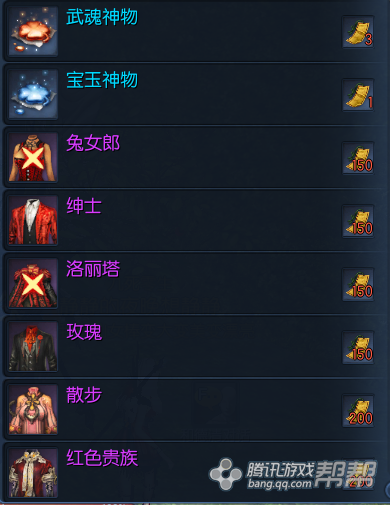 1、飞龙工商可以兑换时装、宝玉神物、武魂神物