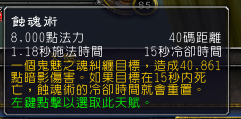 蚀魂术已经没有了斩杀效果,也不消耗碎片,也没有增强效果,目前就是一个高伤害技能。