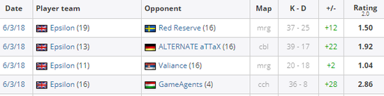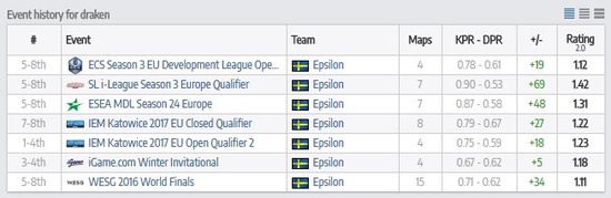 值得一提的是,目前效力于NIP的狙击手draken也曾效力于Epsilon。而他们两人分别在效力Epsilon期间的个人表现非常相似,而且均表现出色。后者也因此收到了NIP的青睐,进入世界顶尖战队的行列中。