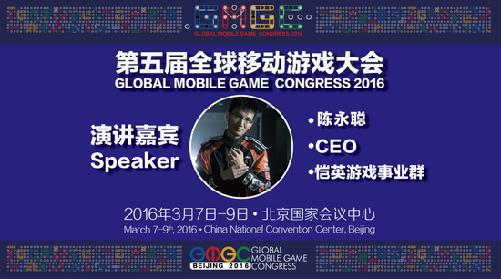 由全球移动游戏联盟GMGC举办的第五届全球移动游戏大会GMGC2016将于2016年3月7-9日在北京国家会议中心隆重举行。同时,恺英游戏事业群CEO陈永聪现已确认出席大会,并参与巅峰对话环节的演讲。