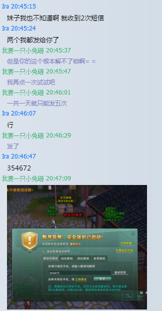 在这个期间,我一直在她的小号上等解锁,她是手机登录的QQ,回复很慢。
