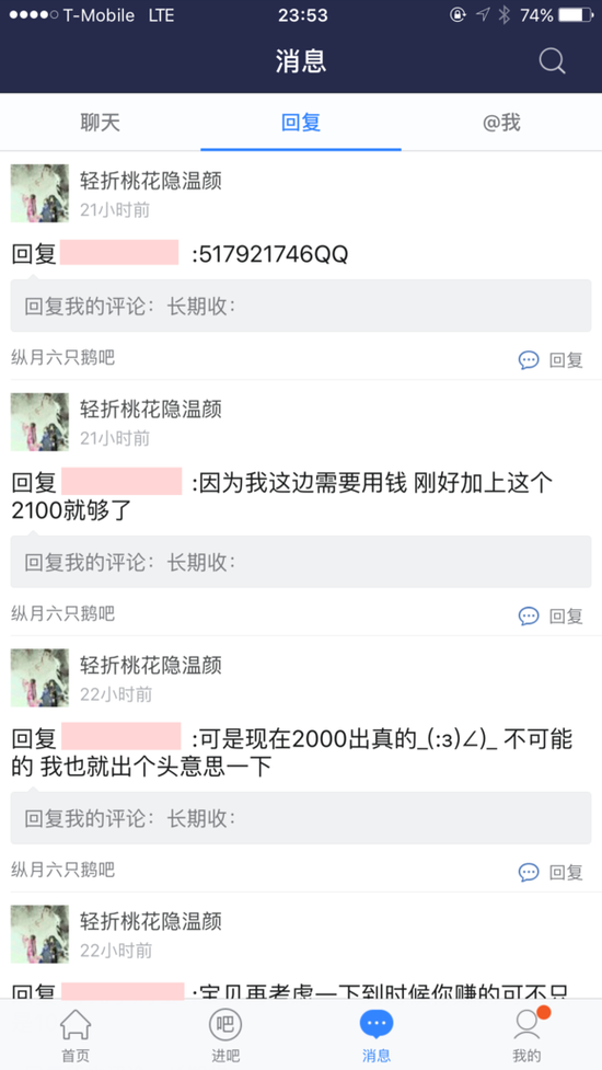 我当时手里的信息只有:她放红发的这个小号账号密码,这个小号的固定锁,她的QQ号码,她的贴吧ID,她的微信名字。