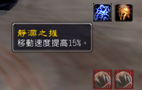 静滞之握:连续对相同敌人施展两次风暴打击后,会产生已到闪电将你与目标连在一起,使你对目标造成的伤害提高15%,你的移动速度提高15%,如果超过15码则会中断 被动。