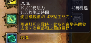 复苏之雾:20秒内治疗一个目标500%SP,如果造成过量治疗则会转移到20码内受伤最重的目标身上,复苏之雾造成治疗时有4%几率让下一次活血术治疗效果提高50%。2.8%2.5%mana