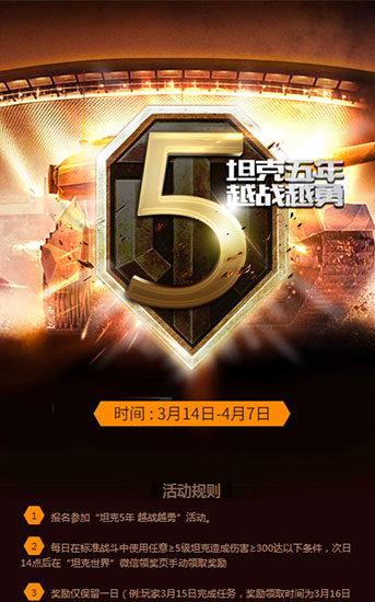 “坦克5年 越战越勇”活动规则详情: