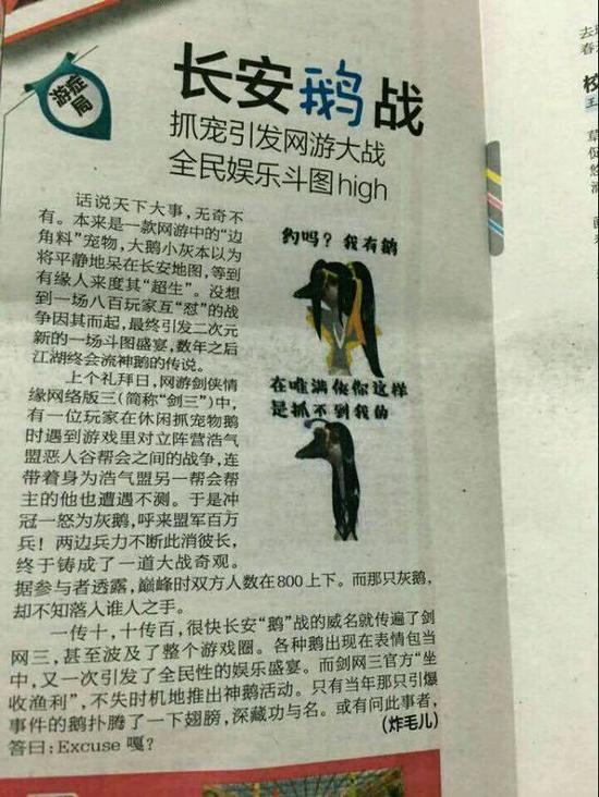 自此这只鹅就变成了游戏里最红的“阵营女神”,而近日更是登上了《深圳都市报》!对此玩家们表示:玩了这么多年还不如一直鹅。