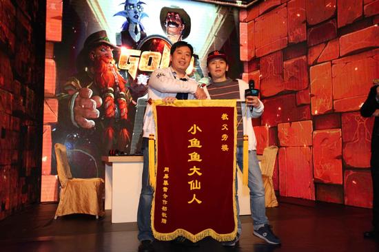 随后著名选手小鱼鱼大仙人被网易副总裁李日强授予暴雪游戏劳模锦旗,表彰他作为选手、战队创始人和社区意见领袖为炉石玩家做出的贡献。授旗仪式结束后,杜海涛提出要加入CL战队的想法,在小测试和表演赛后,杜海涛如愿获得CL队服,成为“教父劳模”小鱼鱼的弟子。