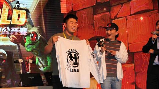 北京时间2016年3月12日,《炉石传说》黄金公开赛广州站现场迎来了一位神秘的参赛选手,那就是湖南卫视主持人杜海涛!海涛今天以选手身份来参加黄金公开赛,表明了他对这款游戏的喜爱,虽然最终没能晋级,但在随后和小鱼鱼大仙人的表演赛中,与鱼仙一起给观众带来了一场精彩的比赛。不得不说:打得不错!