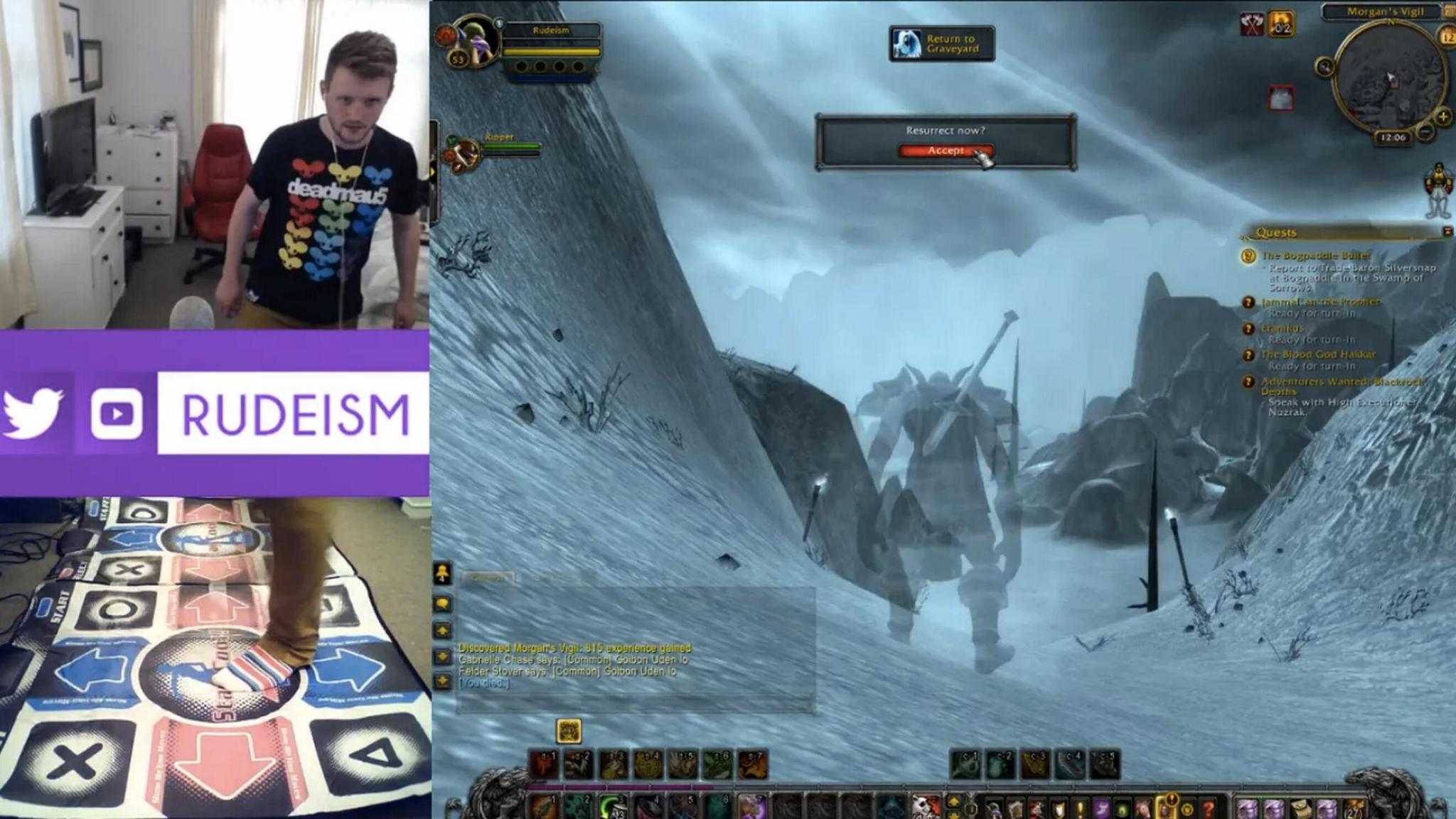 国外有位玩家试图通过跳舞毯操作将他的魔兽角色升到100级,目前他已经完成过半了。