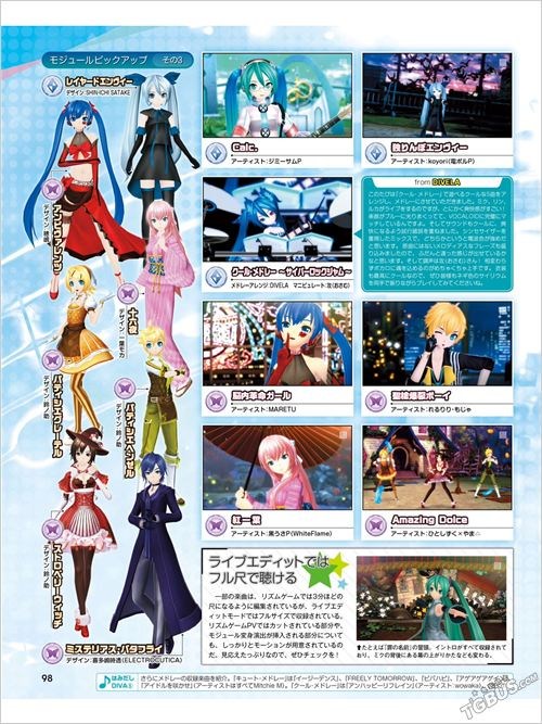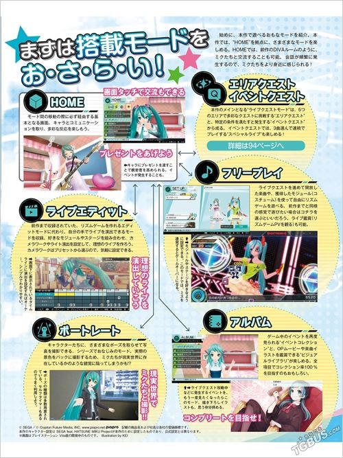 演出编辑模式:前作有收录,自由编辑演出时的服饰及舞台,调整摄影视角及灯光等等,可以创造出自己理想的演出舞台。