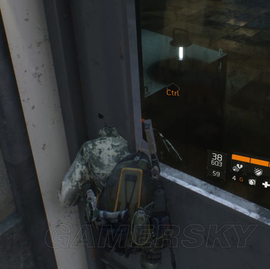 在大门左侧调整一下位置,你会发现 Ctrl进入掩体的提示。