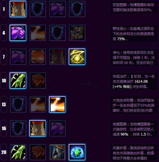潮汐奔涌:增强团加能力,结合上鲜血与雷鸣最多可以减少5秒的CD,但频繁地使用治疗链会影响到续航问题,推荐与4级灵魂行者的恩赐一同点出来。