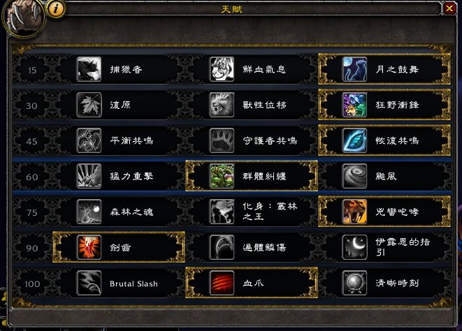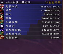 - 剑齿:你的凶猛撕咬每消耗一个连击点数,能延长撕扯(割裂)持续时间2秒,这个天赋目前也有BUG,并不是最大延长10秒,而是直接刷新(PS:目前凶猛撕咬对生命低于25%的目标不再刷新撕扯(割裂),不知道是不是BUG)