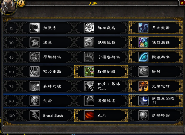 清晰时刻:使你的能量上限提高30点,并且清晰预兆影响你下3次猎豹形态下的技能,目前只有能量上限,但是依旧只影响1次技能,所以暂时不用其测试。