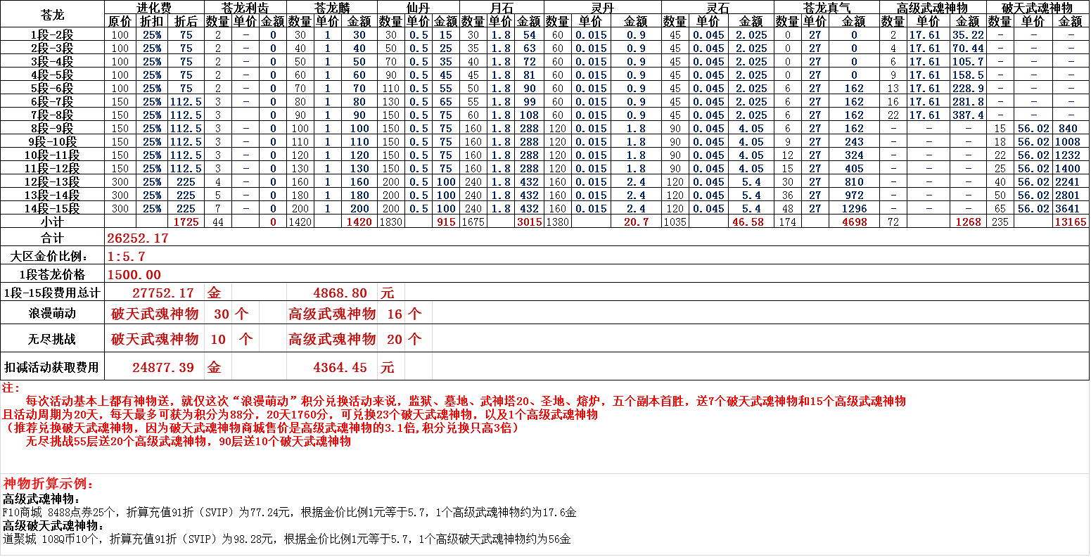 以电信六区的物价为蓝本 制了一张表,供大家参考