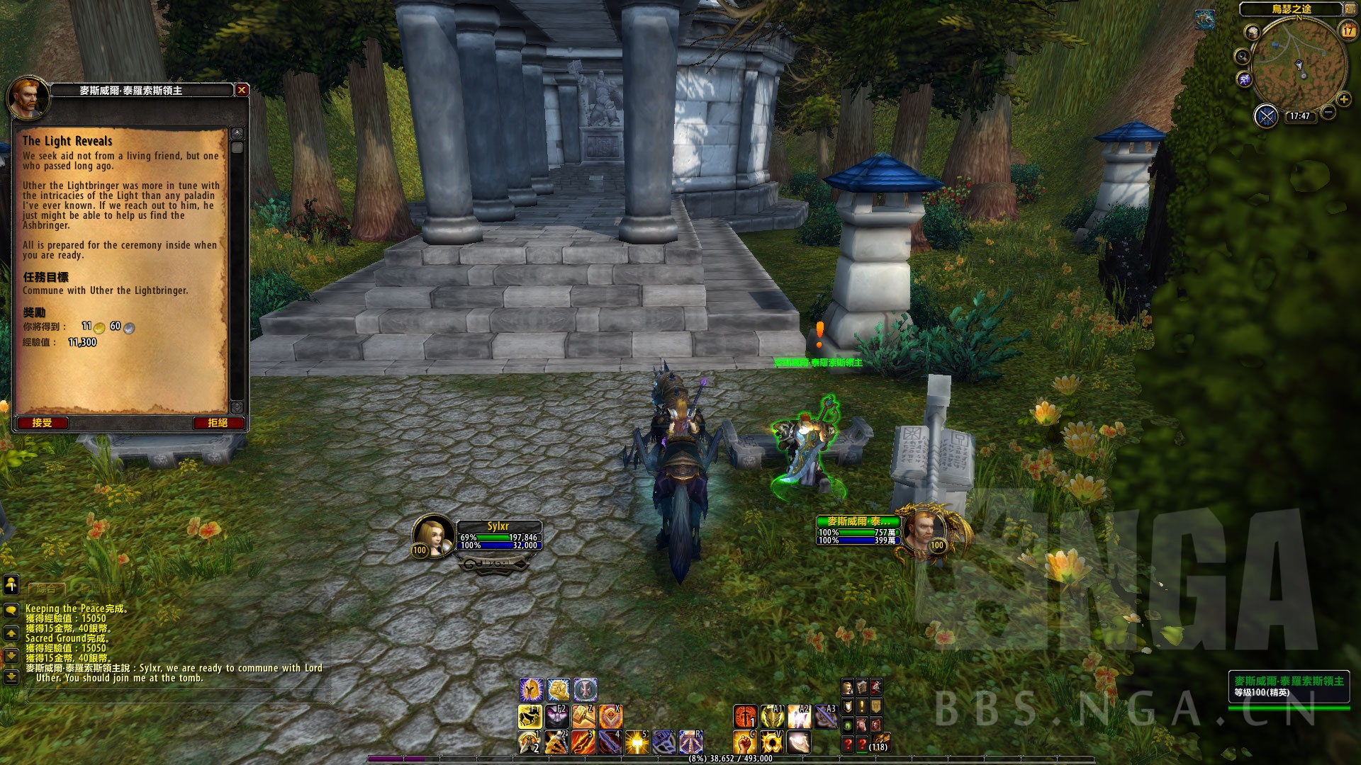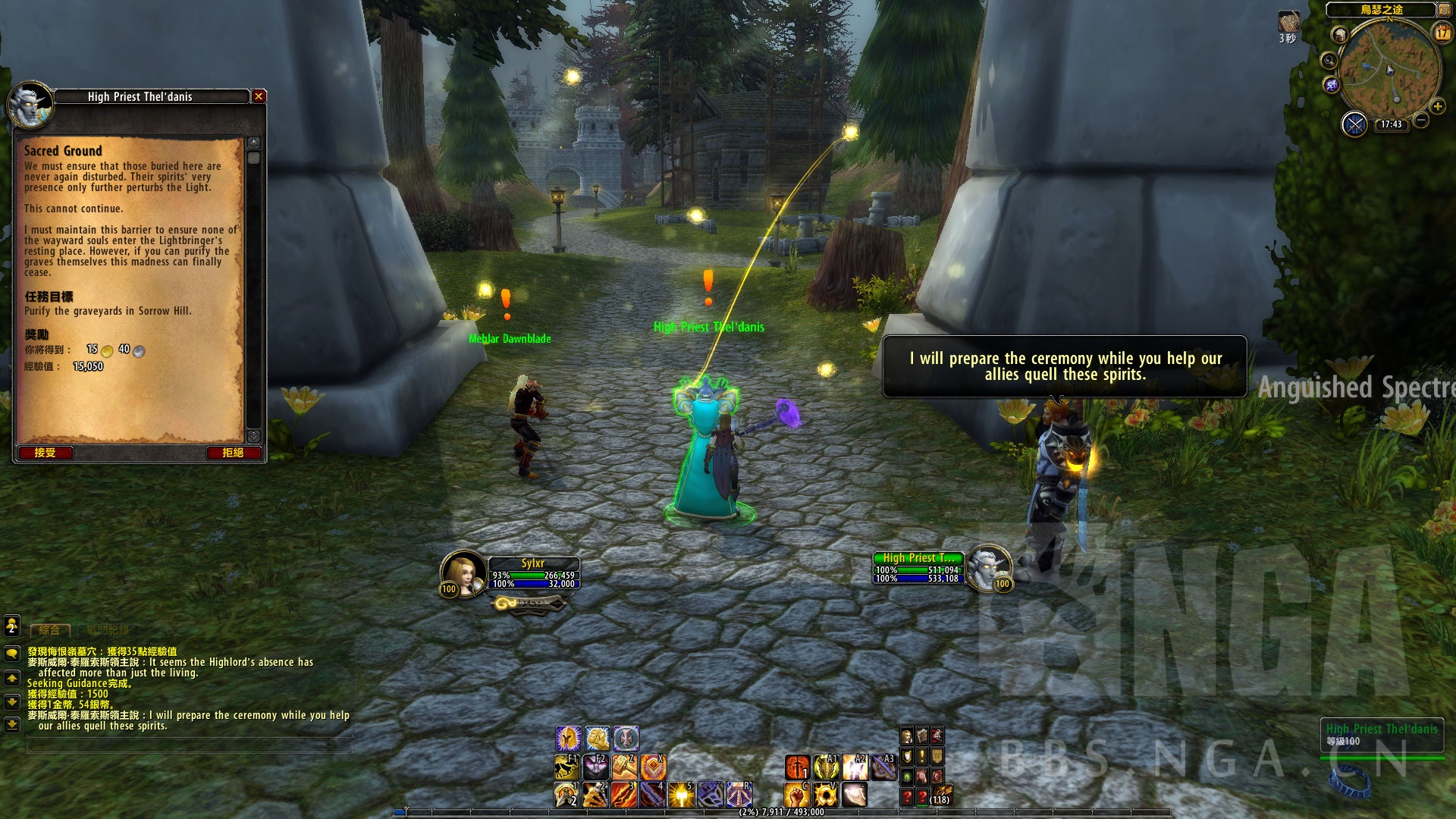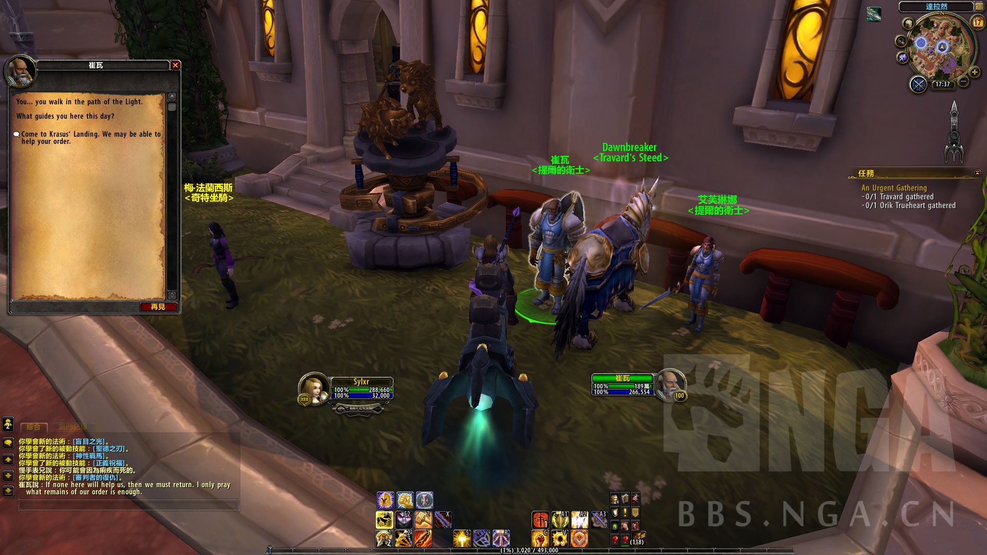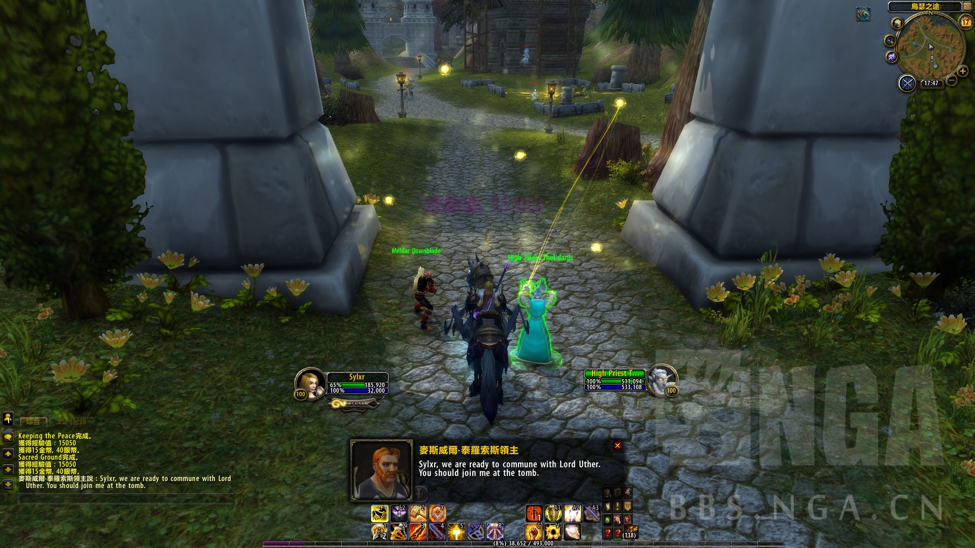 来到西瘟疫之地的乌瑟尔之墓,遇到了两个老NPC,高阶牧师赛尔丹尼斯 和 麦拉·黎明之刃