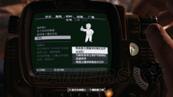 [守卫城堡]之后会接到小黑给的[核能选项]任务。要潜入学院炸掉反应炉之后一路炸掉反应炉,中间可以看到快不行的儿子,可以劝说得到密码,通知疏散人群同样在这个终端里。放好炸弹回到传送点会发现合成年人儿子在门口等着。之后带着儿子离开,炸掉学院。然后CG。之后铁路跟兄弟会还会有新任务
