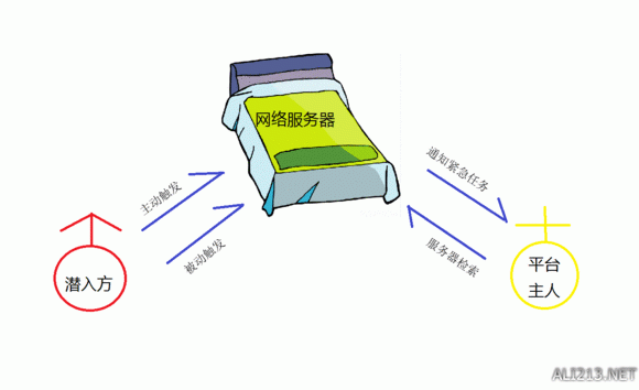 被动触发:高级平台有个特殊警报防御系统,入侵者从下飞机一刻开始,服务器接受到入侵信号,维持到入侵结束,但不会主动立刻向平台主人发出被入侵信号。只要平台主人不检索网络服务器数据,就不会收到入侵通知和生成紧急防御任务。