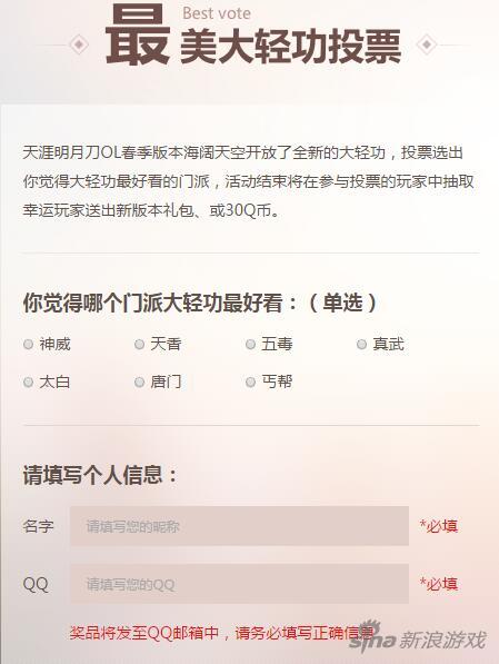 新浪天涯明月刀专区迎接新版本的专题活动得到了大家积极的参与,十分感谢!以下是中奖名单: