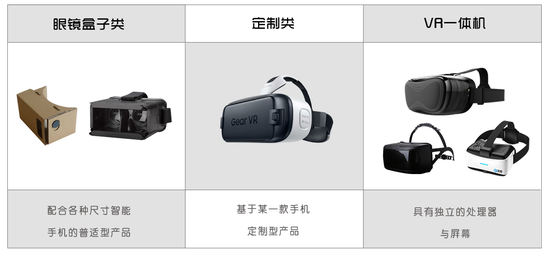 从原理上讲,完整的VR体验是由VR头显和VR内容两部分组成,两者通过“VR交互外设”衔接带给使用者身临其境的沉浸感。细分目前移动VR市场,主要分为三种产品形态。一是以Google Cardboad为代表的”手机+VR眼镜盒子“产品;二是以三星Gear VR为代表的”手机+VR定制头盔“产品;三是将处理器、屏显等进行统一封装的VR一体机产品。