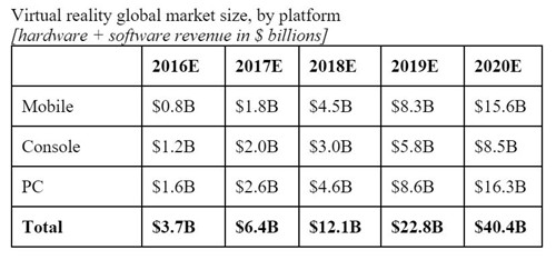 根据SuperData最新数据显示,预计至2016年年底,全球消费者将购买1680万部面向移动平台的VR设备。这家公司此前曾预测VR市场今年将实现51亿美元营收,但现已将这一数据下调到了36亿美元。其分析师斯蒂芬妮•拉马斯(Stephanie Llamas)表示,公司之所以调低对VR市场收入规模的预估,PC端VR头盔难以迅速普及是关键原因之一。