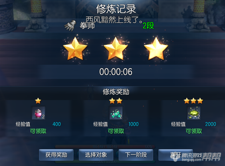 挑战成功,可以直接进入下一阶段或者重新选择对象
