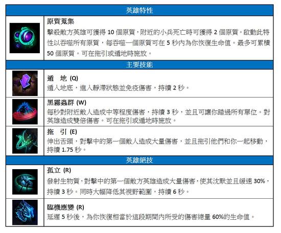在泽瑞斯星上,原生虫族的族群领袖德哈卡是不断进化的至尊掠食者!虽然德哈卡没有坐骑,但是能以草丛或排烟口为目标遁地,神不知鬼不觉地穿越战场后从目标钻出,无所不在。只要附近有英雄或小兵阵亡,德哈卡的“原质收集”会累积原质;他可以吞噬原质,在几秒内恢复生命值。倘若运用得当,德哈卡就能凭借收集与吞噬原质,达到几乎永远不死的境界!