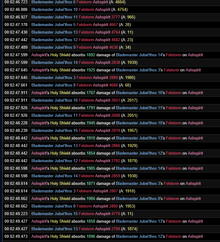 当时在这个帖子里,蒜大主要的测试重点在于死眼饰品,对于神盾在副本中的具体发挥机制并没有详细的说明。后来的一些天赋讨论多多少少沦为孰优孰劣的辩论贴和炫耀贴。也是因为6.2这个版本职业饰品和套装都太耀眼,没有人愿意停下步伐认真审视这个被动天赋。本文就用3月15号farmM4号boss议会的WCL跟大家深入探讨。为什么选择M4呢,因为剑圣在转阶段的时候会提供大量高频微量的法术伤害,有助于数据样本的提取。并没有这么深奥,其实就是转阶段我的盾不停地在冒光。