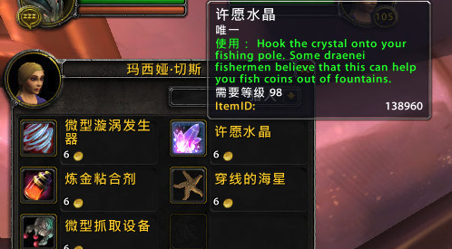 喷泉边的钓鱼训练师出售一些特殊的鱼饵,可以在达拉然的喷泉钓起新版的许愿硬币。