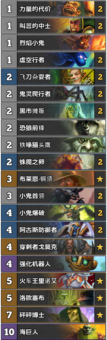 这是最经典的卡组之一,铺场和持续作战能力优秀,叫嚣和力代诠释了以小换大的核心,末日守卫作为最好终结手段之一也能够解掉很多棘手生物,生命分流不断创造手牌优势。上一次周报中动物园在T1的底部,现在几周后,动物园站在了T1的顶部,套牌的核心仍然是持续抢得场面优势,使用早期游戏强势的卡牌,如小鬼首领;搭配游戏后期可怕的威胁,如砰砰博士。动物园仍然是强度十足的套牌,只要你能够拿下场面,你基本可以取得所有对局的胜利。