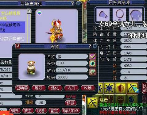 这只召唤兽便是今天我们炼妖阁栏目的主角,一只拥有8技能的童子,资质也出奇的好,攻击资质1503,防御资质1340,体力资质3802,成长1.3,由于这只召唤兽没有特殊技能,但是攻击资质非常的好,成长也是最高1.3,防御资质也不低,被打成耐攻的可能性比较大。