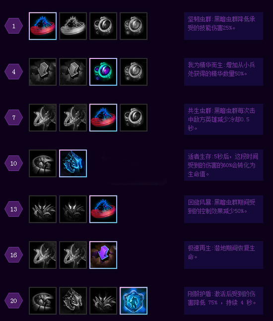 共生虫群:减伤Wcd,配合其他W天赋非常实用 。