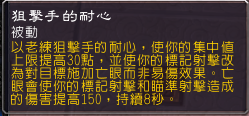 如果标记射击打到没有这个DEBUFF的目标,是不能提高150%的,所以战斗的全程尽量保证这个DEBUFF不要断(当然需要非常看脸)