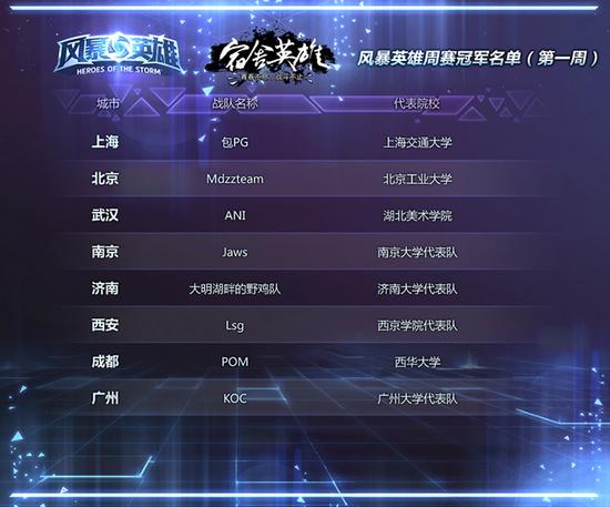 2016《风暴英雄》宿舍英雄春季赛第一周的比赛于本周六(4月9日)圆满落幕,8支发挥出色的队伍夺得了城市赛的冠军,祝贺他们!
