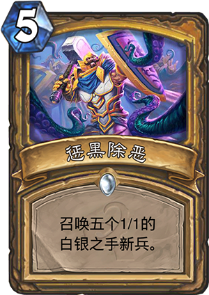 骑士召唤5个报告兵,这张卡可以让对面完成五杀,而且比起作战动员来说,虽然多了2个报告但是少了一把“圣光的正义”作为1张5费的卡,与3费的3个报告加补刀锤完全没法比。