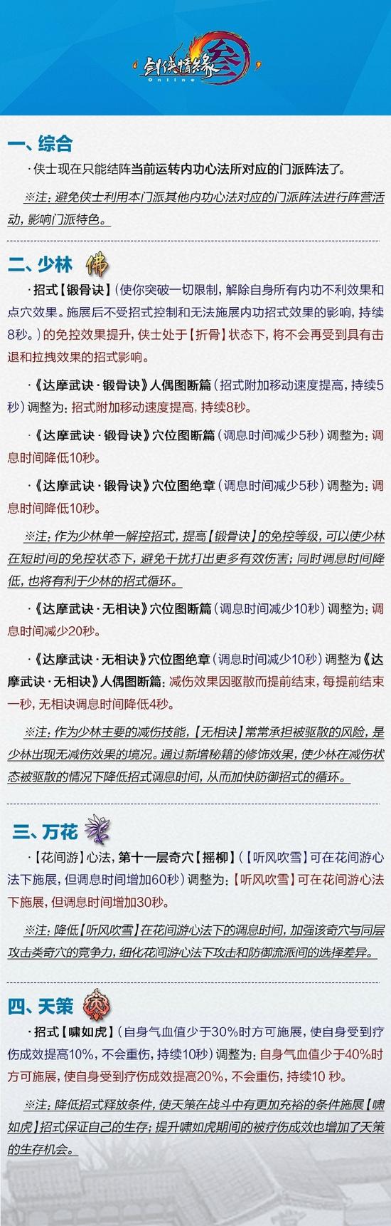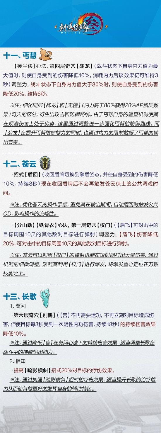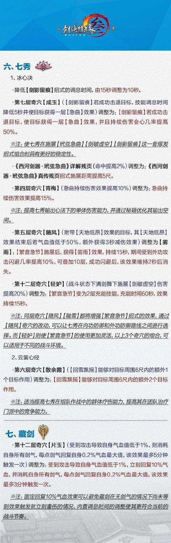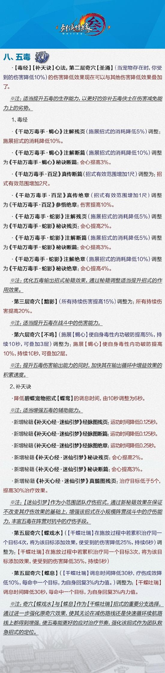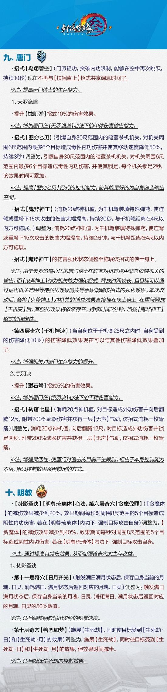 #剑网3壮志凌云# 各门派技能调整新鲜出炉!(非最终版),全新改动将于今天下午4点在测试服更新。