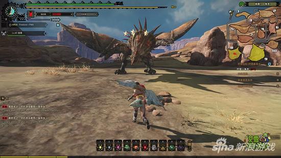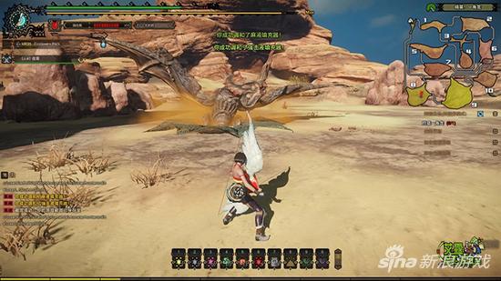2。清小怪,8区会有3只小黄速龙,直接上秘箭,3发清掉小怪,然后靠近一角龙,在不被发觉的情况下,给一角龙尾巴一发秘箭,然后一角龙会发现你,这个时候一般会吼叫一声,不出耳栓则会被震在原地,这里就要飞扑一下,向着一角龙飞扑,起身之后一角龙会先在原地焦躁不安,现在去它脚下,放一个麻痹陷阱,直接控住。
