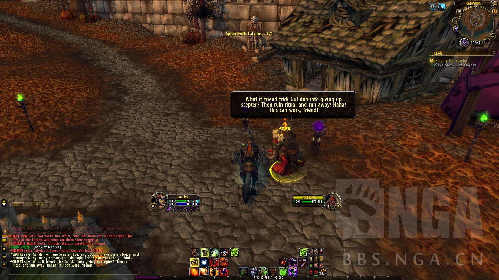 最大的问题在于,萨格拉斯之杖目前在古尔丹手中。 根据卡莱德斯所说,古尔丹正在召集暗影议会的成员,要进行一个重大的仪式,他建议我先从这里入手