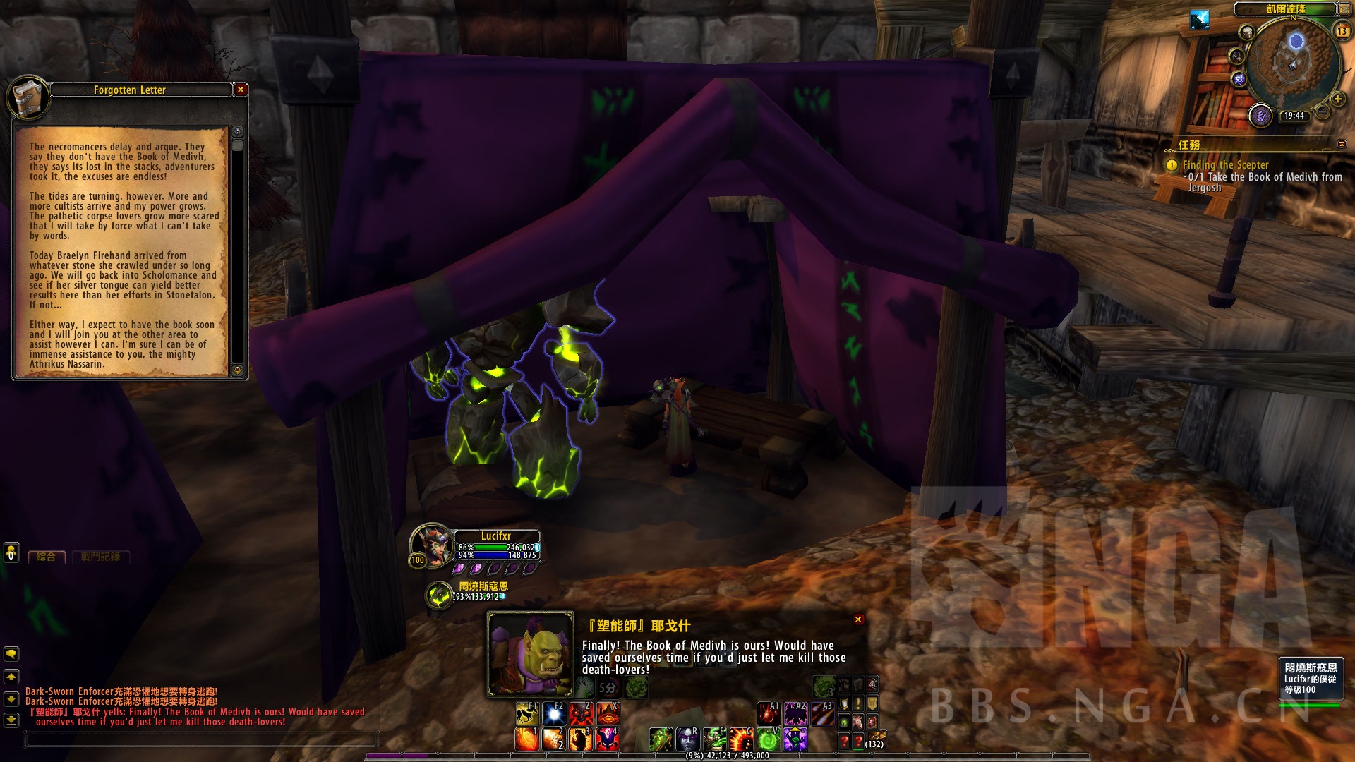 不一会,就听到了[塑能师] 耶戈什的胜利宣言,他们已经从死灵法师的手中得到了麦迪文之书