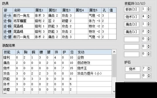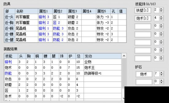 这套成本进一步升高,需要一个斩铁3,但是能到攻击中(6点攻击力),这套还能再升级成,断刃头 炮术9护石,能到攻击大。