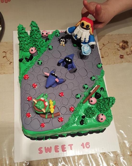 方形的召唤师峡谷、小兵、蘑菇、草丛、提莫和巴德就这样变成了餐桌上的蛋糕。