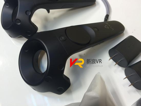 HTC Vive手柄采用45度角弯曲设计,可以很好地迎合用户的手掌,它采用了来自Steam手柄上的可适应触觉回馈功能,还有针对选项以及其他应用操控的点击控制。用户在SteamVR的演示中可以体验包括拍手在内的手势动作,这在一定程度上印证了两只手柄之间的关联性。