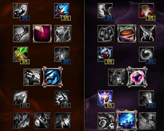 天赋方面首先是在凶猛系的第二层,点出盛宴的话,对线能力相当强。也可以点出揭示弱点,因为扇子妈的各项技能、属性等都决定了她是一名比较依赖团队的法师,所以点出解释弱点能够增加团队的伤害,这是非常不错的选择。其次就是在诡诈系的雷霆领主的法令。