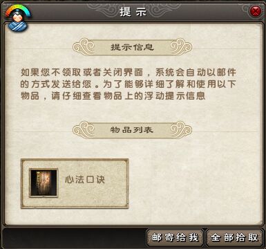 做出选择后,将“心法口诀”放至NPC对面的小桌子上即可完成任务并获得奖励和抉择结果的阵营偏向值!