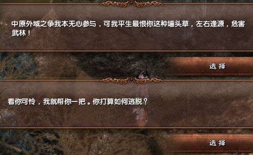 此刻,大侠们便需要通过自己的喜好来做出自己的选择!建议大侠们仔细阅读与NPC之间的对话,以免帮错了阵营!