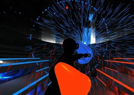 而在虚拟现实中,这些事情是很有趣的。 游戏中,会有小型机器人在你的脑袋附近瞬间变大, 你要击杀攻击你的敌人, 还要时刻留意警报,以躲避飞弹。