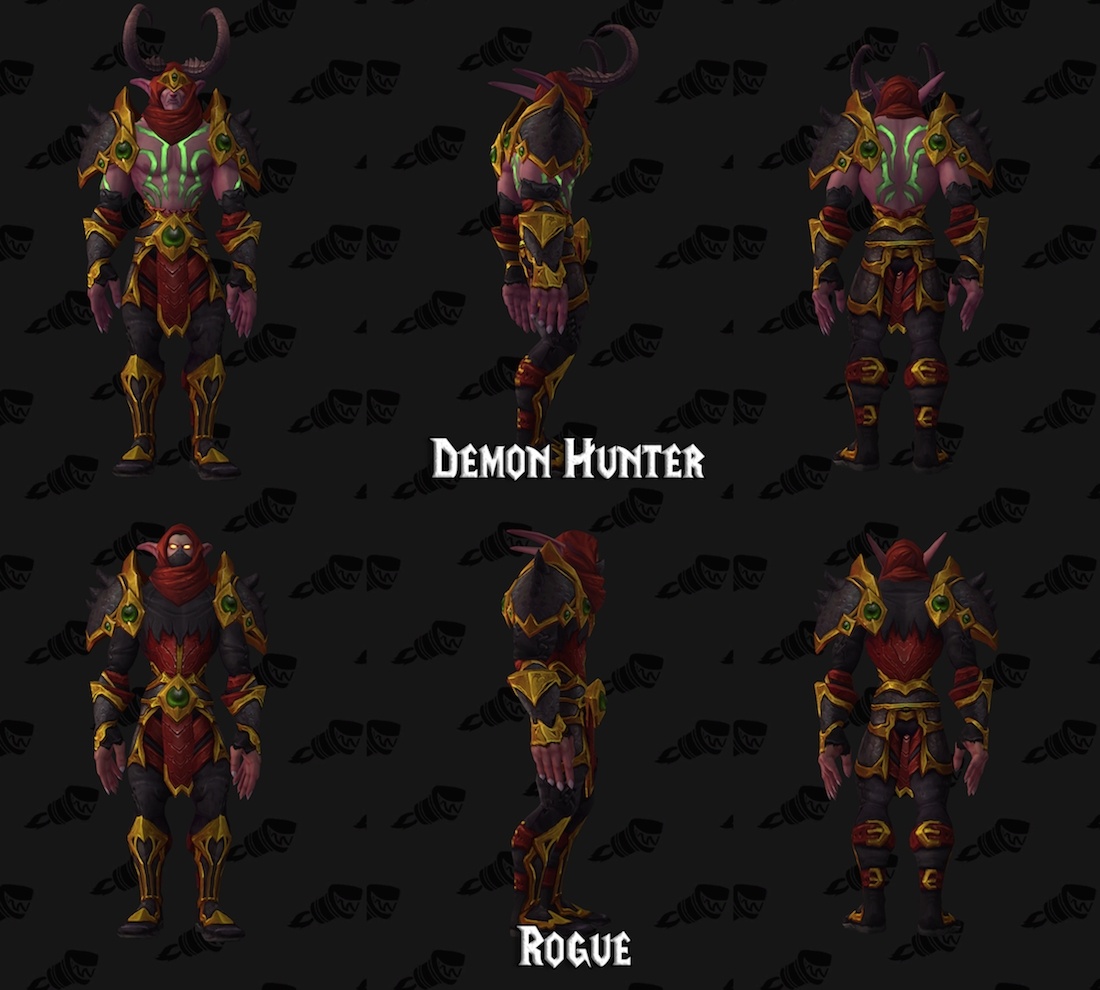 在7.0军团再临版本中,新增的恶魔猎手职业有独特的眼罩和纹身。在最新的Alpha客户端中,我们发现恶魔猎手装备套装以后会有特别的视觉效果:头盔会自动遮盖眼睛,而胸甲会漏出纹身部分。
