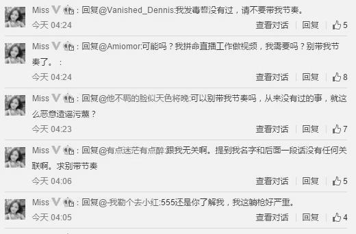 并且MISS在昨天正式通过微博发布了上面的那则声明,表示自己无故躺枪。