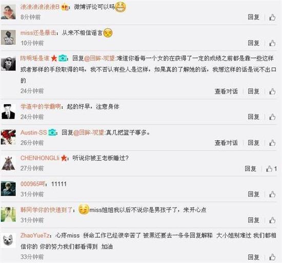 之后,众多网友纷纷留言力挺MISS,表示很心疼MISS拼命工作还得去顾及自己被黑去解释。